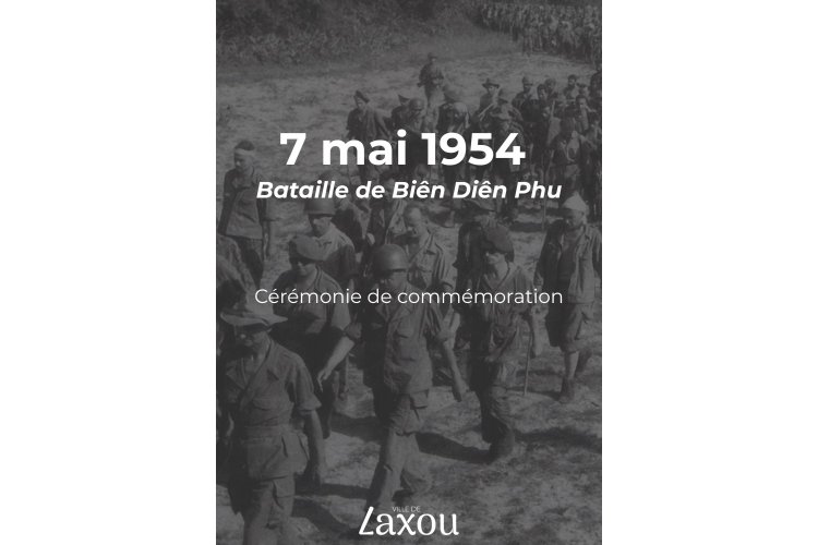 L'ensemble des membres du Conseil Municipal ont le plaisir de vous convier à la cérémonie de commémoration de la bataille de Diên Biên Phu le 7 mai 2026 à 18h au monument aux morts du Parc Pol Choné de l'Hôtel de ville.