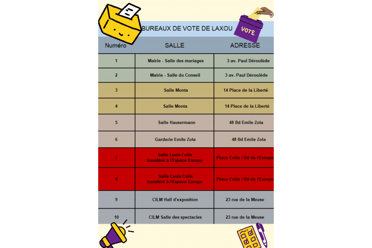 Les bureaux 7 et 8 sont transférés de la salle Colin à l'Espace Europe situé à 50 m.