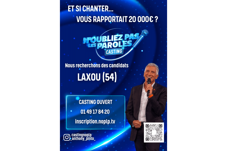 Vous aimez chanter et connaissez les paroles de vos chansons préférées par coeur ? Tentez votre chance au casting de l'émission N'oubliez pas les paroles ! sur France 2, ouvert aux habitants de Laxou et ses alentours.