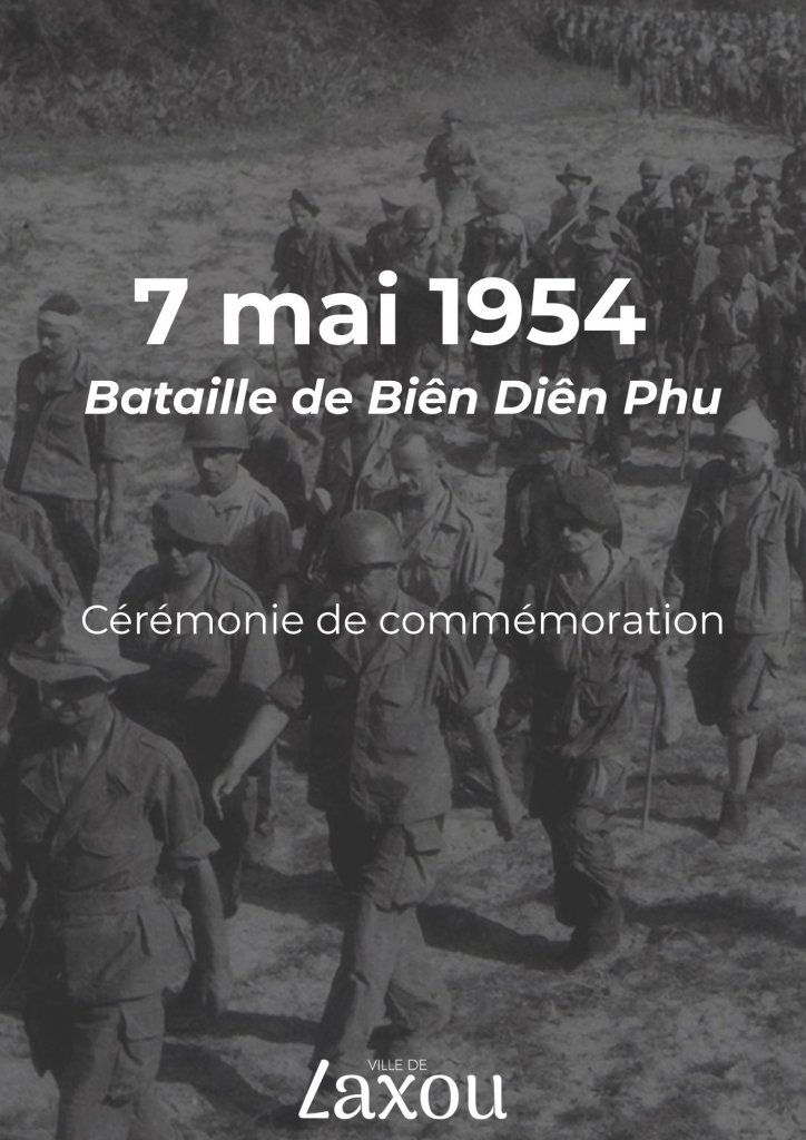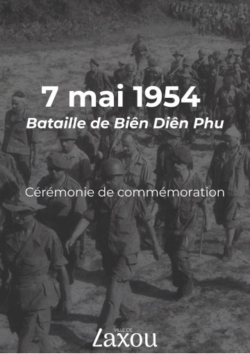 L'ensemble des membres du Conseil Municipal ont le plaisir de vous convier à la cérémonie de commémoration de la bataille de Diên Biên Phu le 7 mai 2026 à 18h au monument aux morts du Parc Pol Choné de l'Hôtel de ville.