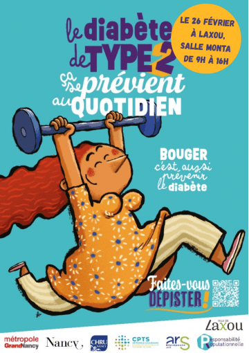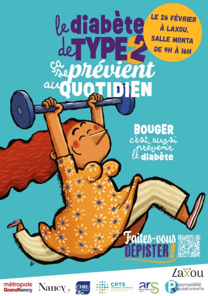 Le CHRU de Nancy, la CPTS, l'AFD 54 , la Métropole du Grand Nancy, et la Ville de « » vous proposent un dépistage gratuit du diabète de type 2.